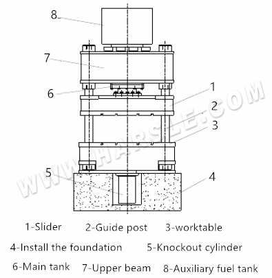 ● La composición básica de la prensa hidráulica de cuatro columnas.